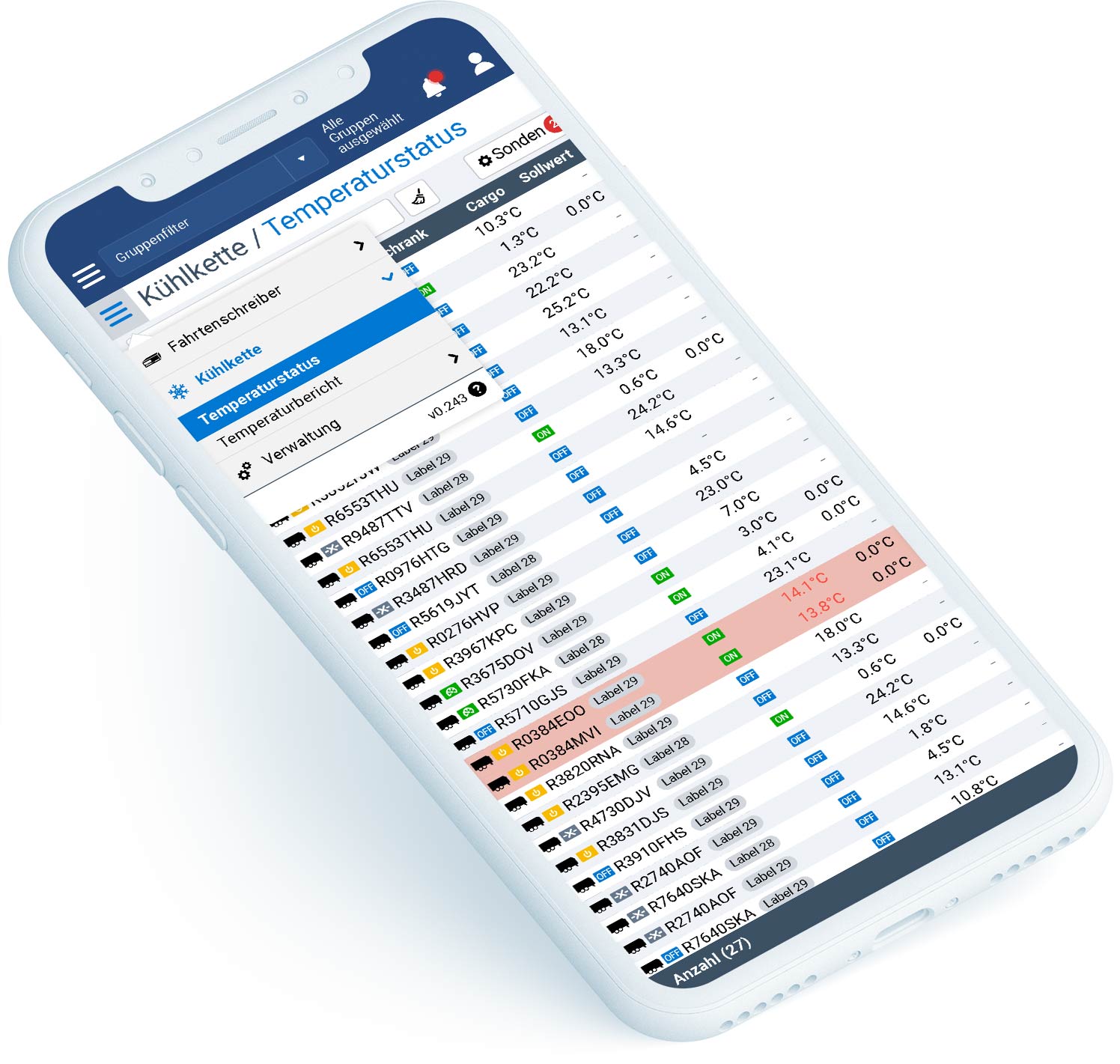 Da die Daten direkt an der fahrzeuginternen Kühleinheit und dem Thermographen abgefragt werden, bietet das Cold Chain System maximale Gesetzeskonformität. Externe Temperatursensoren werden nicht benötigt.